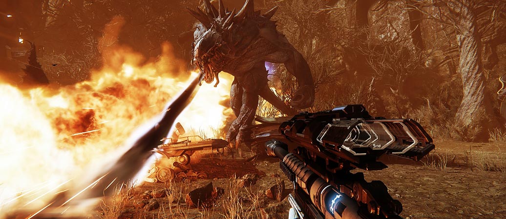 Last yearโs Titanfall caught a lot of flak for its lack of a coherent story that was poorly interwoven into gameplayโฆ but it still featured different introductions related to objectives, narrative during gameplay, and chaotic epilogues set to epic music that made gameplay enjoyable. Evolve features none of that.