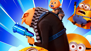 Stuart, Kevin, and Bob are seen singing, playing musical instruments, and blowing bubbles. This is followed by a rundown of all the movie characters as sort of a finale. In the end, they are all frightened away by a T. rex. Young Gru tries his freeze ray on the T. rex, but the freeze ray malfunctions.