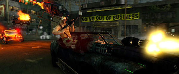 The new car format takes away from the character development and makes gameplay weird when all of a sudden Mr. Grimm is driving Sweet Tooth’s ice cream truck or Sweet Tooth is driving Grimm’s motorcycle. It especially doesn’t make sense when Sweet Tooth and Dollface are driving each other’s cars when they’re supposed to be warring factions. In previous games, each character and car complemented each other perfectly and everybody had their favorites. Now when you see an enemy car and don’t know who’s behind the wheel, it doesn’t seem as meaningful because you’re just fighting some random, unknown driver from Sweet Tooth’s or Dollface’s gang. Sure, now you can customize cars with user generated paint jobs, which is pretty cool, but you can do that in any game with cars nowadays; I’d much rather have set cars with set drivers who have personalities and stories behind each one.